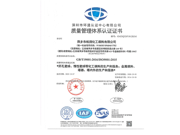 萍鄉(xiāng)市松潤化工填料有限公司位于江西省萍鄉(xiāng)市國家經濟開發(fā)區(qū)西區(qū),是專業(yè)生產、經營陶瓷、聚丙烯、金屬填料、塔內件、水處理濾板、濾管、濾料、瓷球、分子篩、催化劑、活性炭、蜂窩陶瓷、瓷質耐磨托輥等系列產品的民營企業(yè)。所有產品由國家非金屬材料和設備質量監(jiān)測中心監(jiān)測檢驗認證。公司現(xiàn)有員工280人,其中有高、中級職稱技術人員36人。工藝先進,技術力量雄厚,產品質量可靠,配...